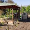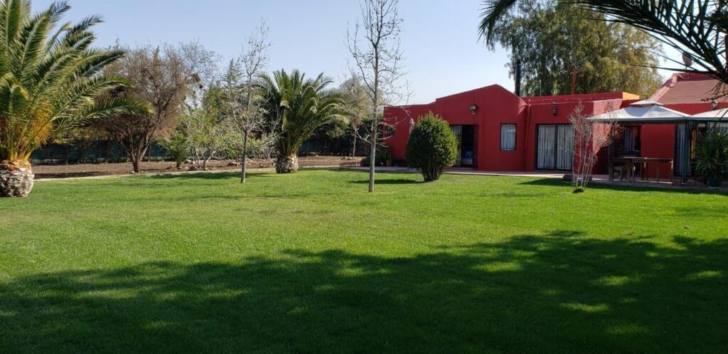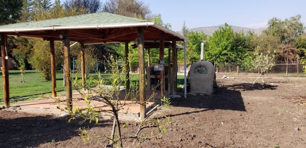 Jardín de 2.300 mt2 aprox, todo con pasto, árboles ornamentales y frutales, riego automático en todo el jardín, cuenta con un quincho con horno de barro y parrilla, techado y con instalación eléctrica completa para una ampliación a gusto.
